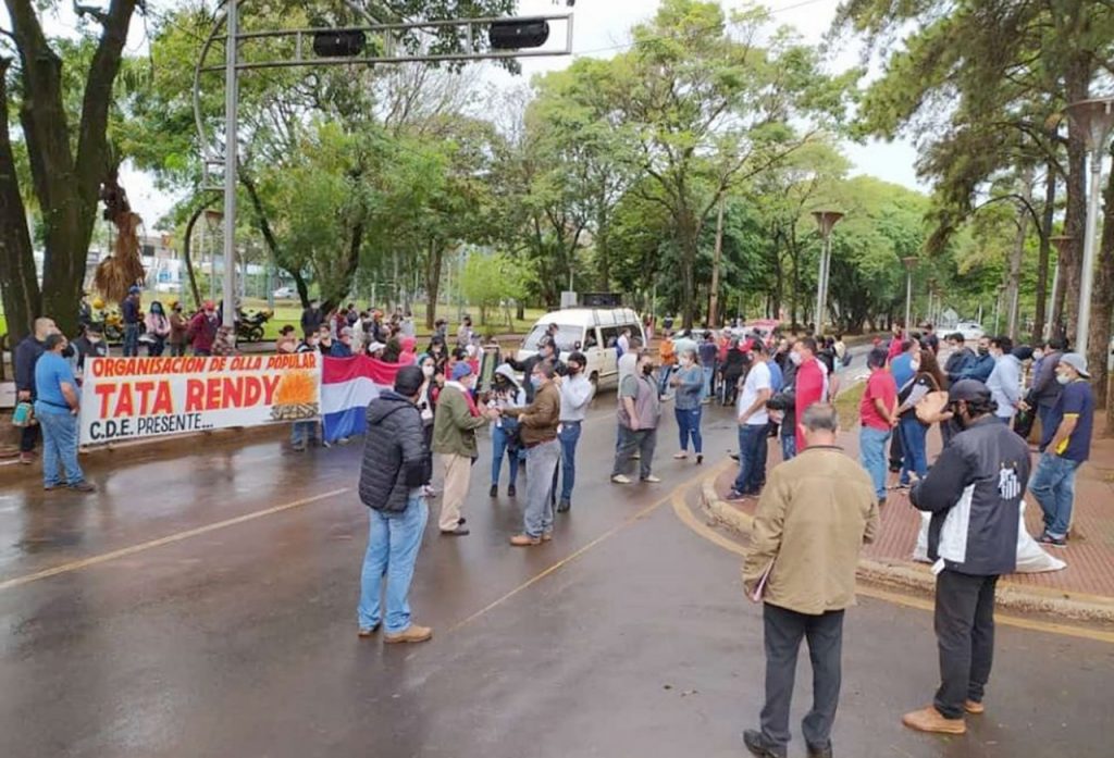 Un importante grupo de personas, residentes en el distrito de Presidente Franco se movilizaron ayer por la avenida Bernardino Caballero, hasta llegar a la Gobernación de Alto Paraná, para exigir con cánticos y carteles que el ente gubernamental preste mayor asistencia a las familias vulnerables de los asentamientos, que se encuentran muy afectados por la cuarentena vigente, pues la mayoría quedó sin recursos tras la prohibición de las actividades laborales desde el mes pasado.
