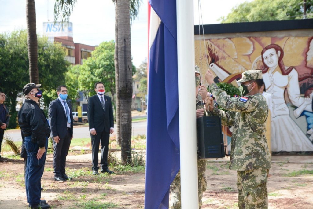 Con el canto del Himno Nacional, el izamiento de la bandera y la ofrenda de una corona de laureles, al son de los clarinetes, se recordó que hace 209 años se logró la Independencia de Paraguay del Imperio de España. El hecho histórico tuvo lugar concretamente entre los días 14 y 15 de mayo del año 1811.