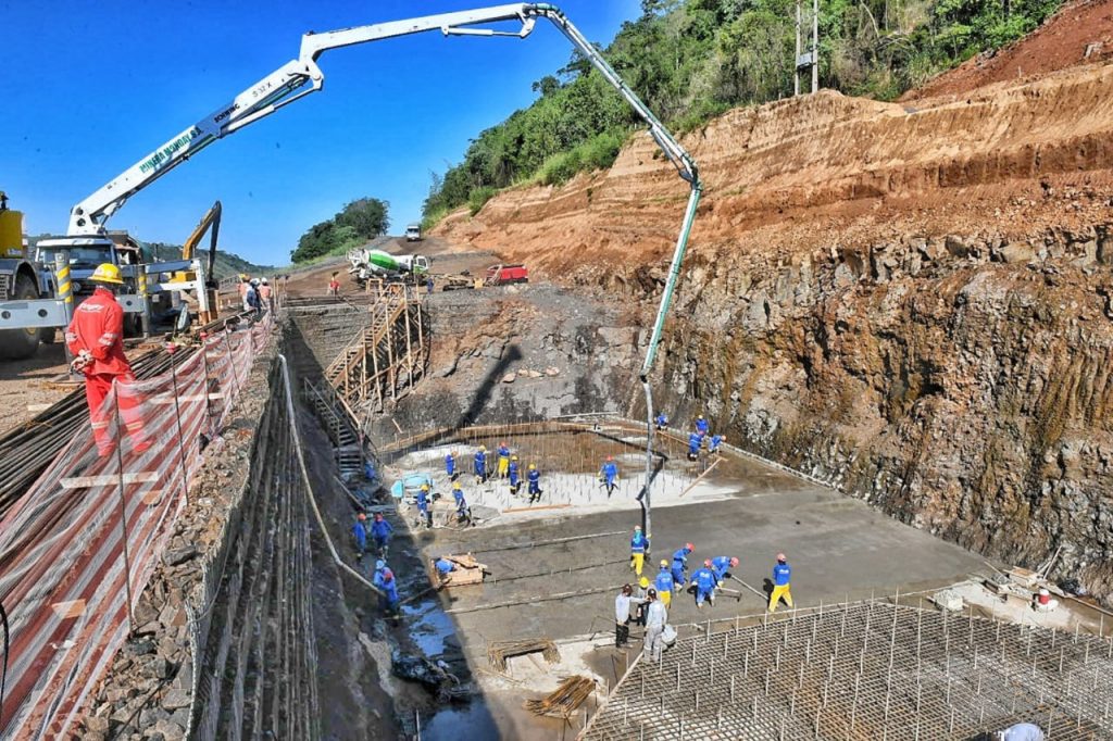 El Puente de la Integración va tomando forma en las 2 márgenes del río Paraná (Paraguay y Brasil), con un importante despliegue de maquinarias y de personal. En el lado brasileño, ya se puede observar la imponente columna de más de 174 metros de altura, que servirá como torre de atirantamiento del futuro puente; y en nuestro país, siguen las tareas de hormigonado para la base de la otra torre. La obra es financiada por la Entidad Binacional Itaipú, que además, informó que se registra un avance de 40% en los trabajos de Multiviaducto de Ciudad del Este, cuyos gastos también son absorbidos por la Binacional, que de esta manera, pese a la pandemia de COVID-19, encara actualmente las dos obras más importantes de la región.