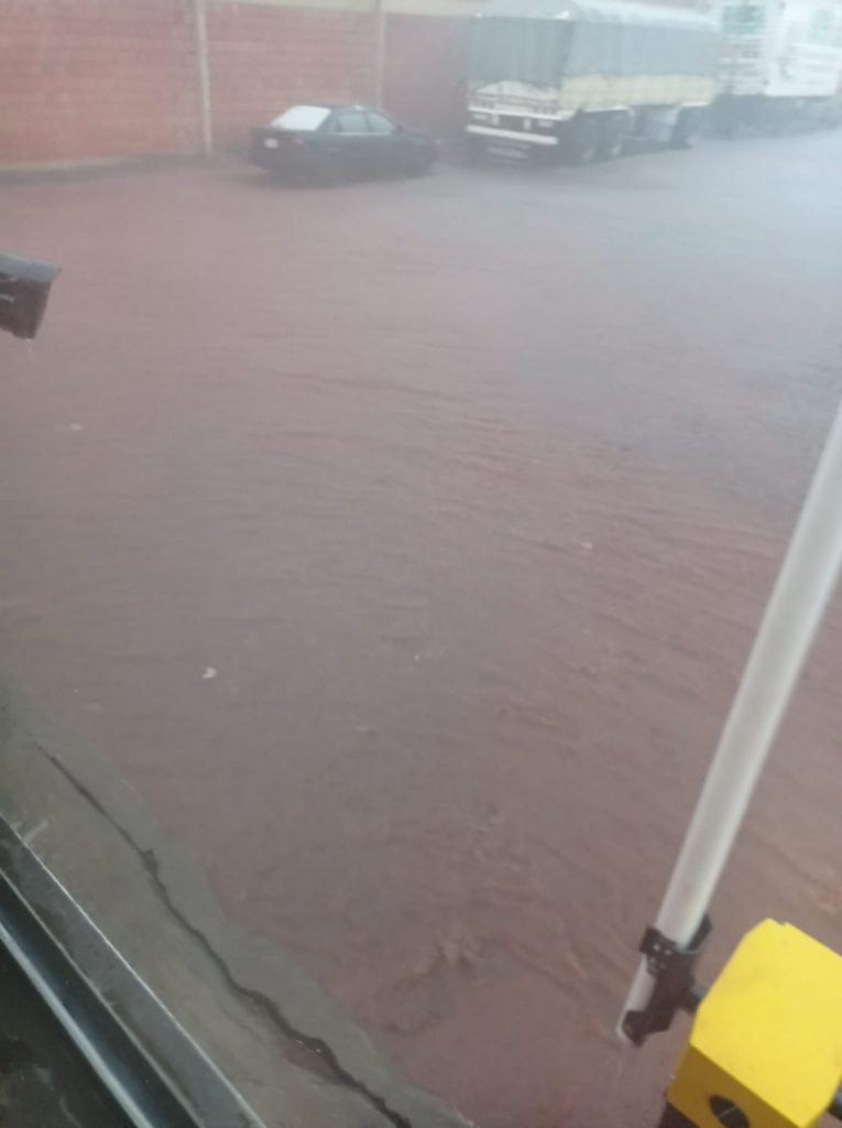A raíz de las fuertes precipitaciones, parte del Barrio San Juan del Km. 8 y medio Acaray de CDE y las instalaciones del Parque Industrial San Juan están prácticamente “bajo agua”, debido a la falta de un eficiente sistema de alcantarillado y desagüe pluvial en la zona. Debido a esta situación, están en peligro centenas de empleos y millones de dólares en mercaderías depositadas en los galpones del Parque Industrial, comentó la administradora del parque, Teresita Bernal.