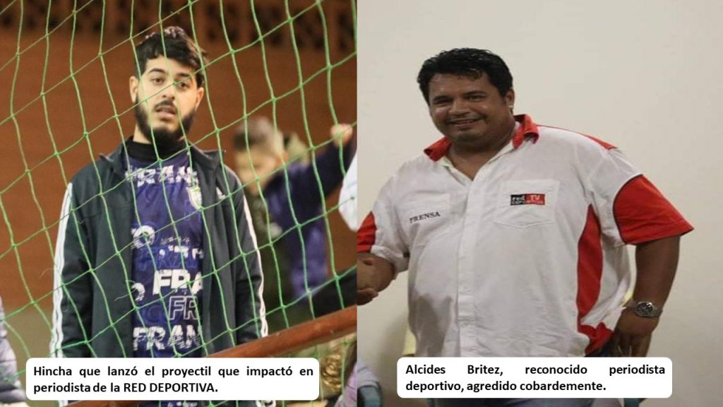 El martes último, tras la disputa del encuentro entre los seleccionados de Hernandarias y Presidente Franco por las Eliminatorias Regionales rumbo al Campeonato Nacional C11, el reconocido periodista deportivo Alcides Britez, quien estuvo en la cobertura de dicho encuentro para la Red Deportiva, fue agredido cobardemente por un mal llamado hincha. El juego ya había concluido, cuando los protagonistas de disponían a abandonar el recinto (Polideportivo Municipal de Hernandarias), el citado comunicador social se encontraba juntando sus elementos de trabajo, cuando sin mediar palabras y apreciando las imágenes de otros colegas presentes en el lugar, el violento sujeto arrojó un proyectil a Britez, pudiéndole esto ocasionar un gran perjuicio.