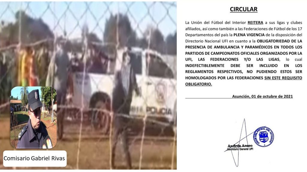 Existe un circular de la Unión del Fútbol del Interior, en donde se reitera a las ligas y clubes afiliados, la plena vigencia y la obligatoriedad de la presencia de ambulancia y paramédicos en todos los partidos de campeonatos oficiales organizados por la UFI. Pero esta disposición no se cumple en todos los escenarios y partidos, quedando exclusivamente a cargo de los árbitros y veedores, quienes son los que deben aplicar los reglamentos.